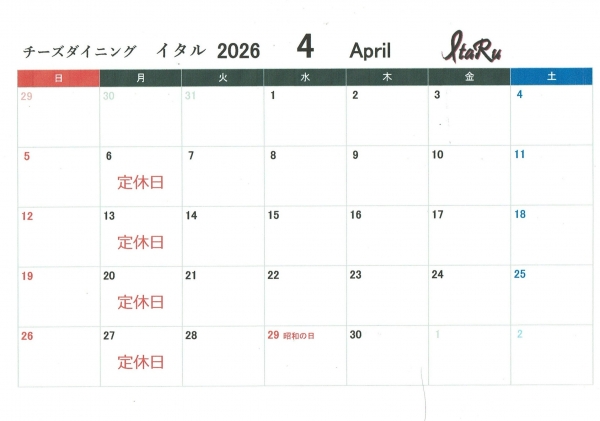 ItaRu 2026年4月の営業案内